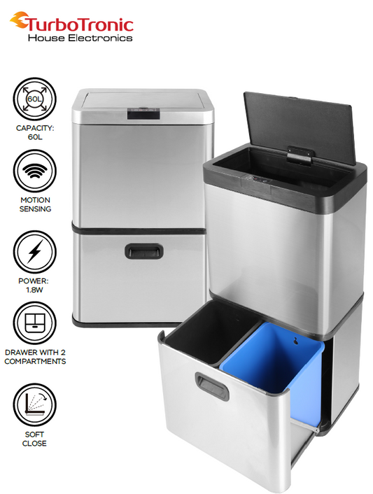 TURBOTRONIC MOTION SENSOR TRASH BIN iBIN60 - STAINLESS STEEL